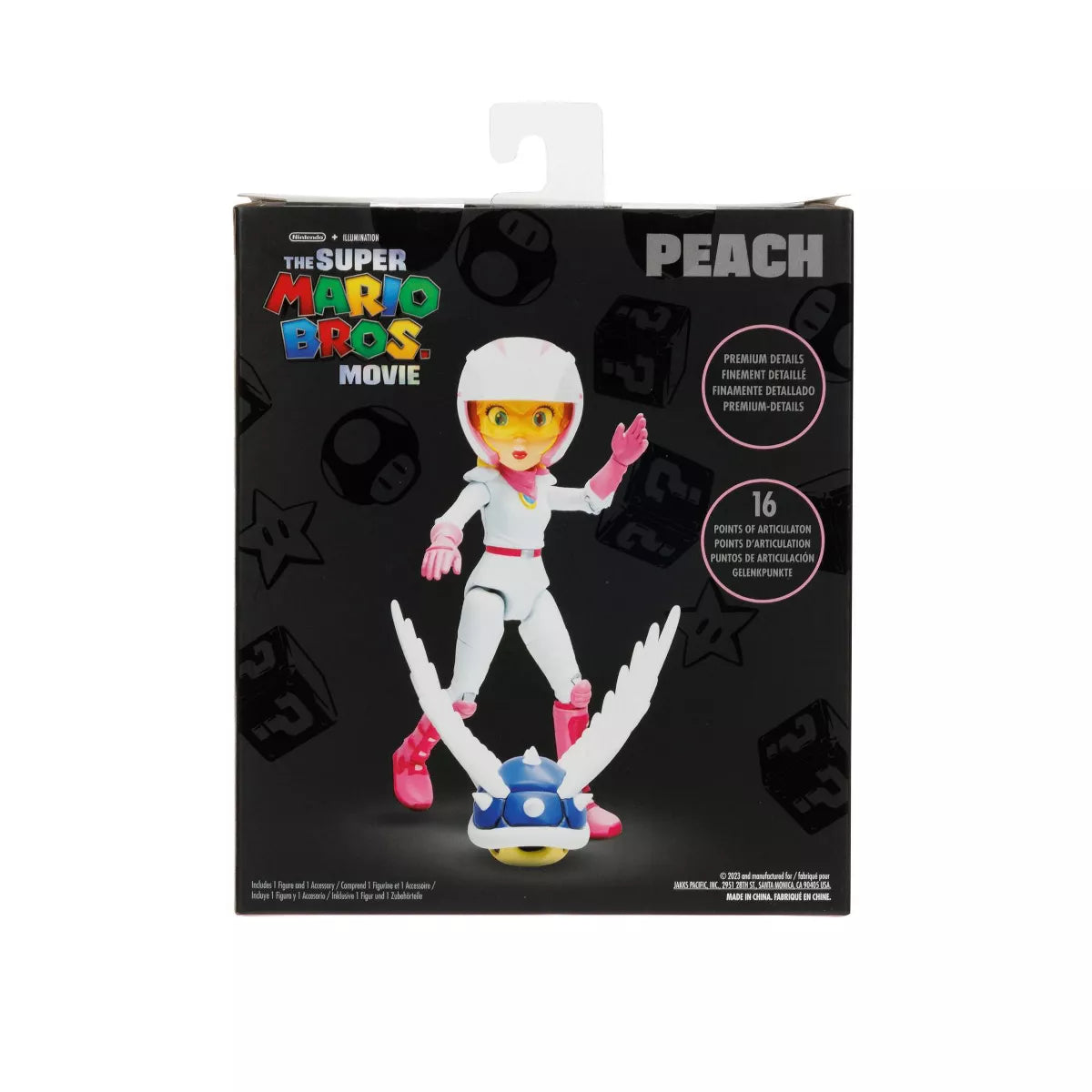 Collect your favorite characters in The Super Mario Bros. Movie 5” Figure series. The Peach figure in her motorcycle outfit is inspired by the movie and comes with premium details including realistic acrylic eyes and 16 points of articulation. Peach comes with a Winged Shell accessory, all showcased in a window box. Wave 1 features Mario, Luigi, Peach, and Toad. Wave 2 features Cat Mario, Tanooki Mario, Peach in motorcycle outfit, and Kamek. You can collect them all!