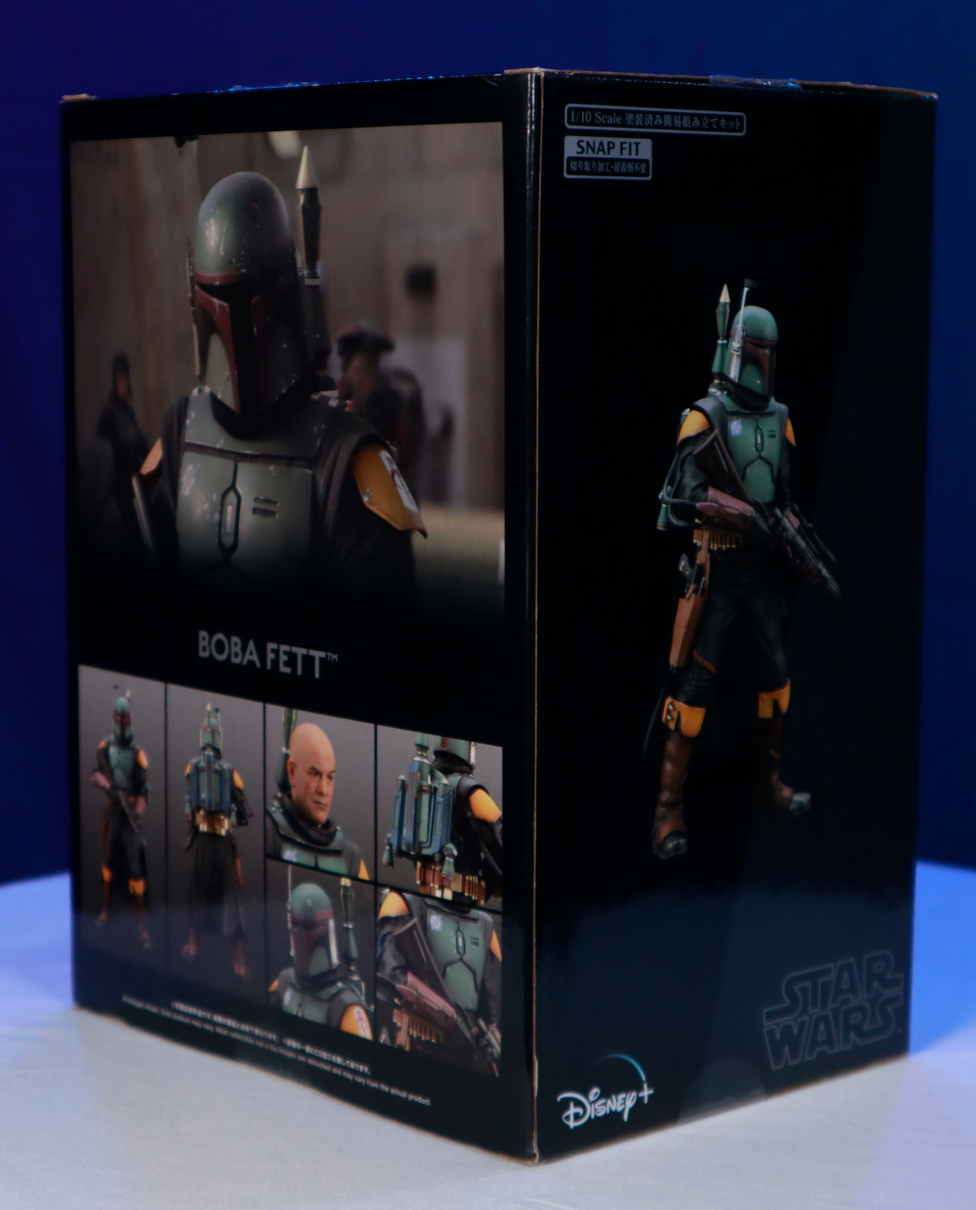 The protagonist from the popular Star Wars live action series, The Book of Boba Fett, Boba Fett is joining the ARTFX+ series! Details such as his outfit, blaster, and rifle are carefully recreated based on the character references in a 1/10 scale. The statue can be displayed freely using the magnets in his feet and steel plate in the square base. An interchangeable head part of Temuera Morrison is also included!